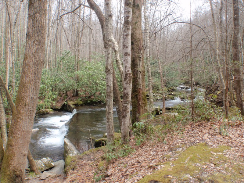 Trail view #17 2014-04-27 800 × 600 Hiking the Tremont Trail, TN 27. Views of waterfalls at the right of the trail–going back down the trail.