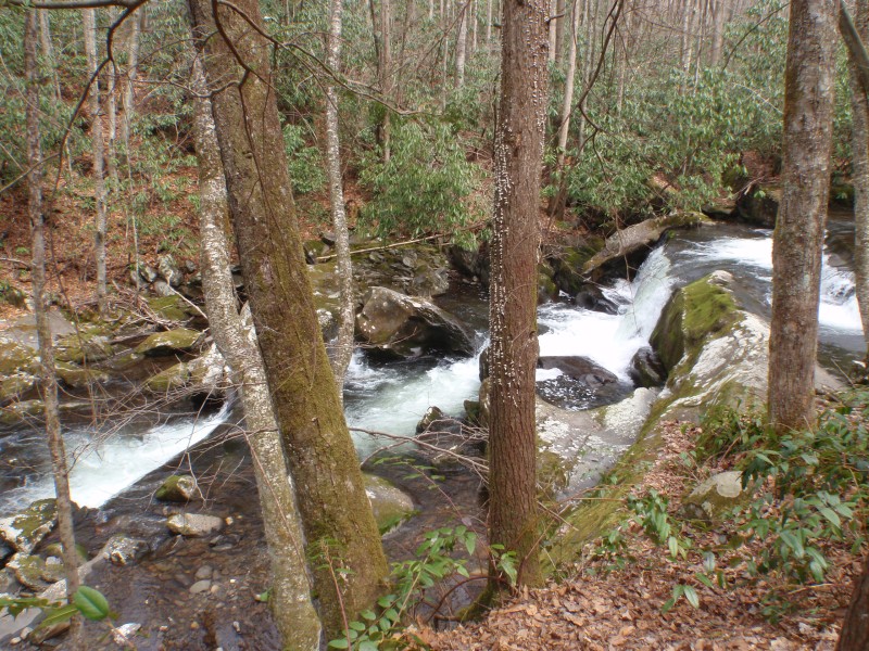 Trail view #19 2014-04-27 800 × 600 Hiking the Tremont Trail, TN 29. Views of rapids at the right of the trail–going back down the trail.